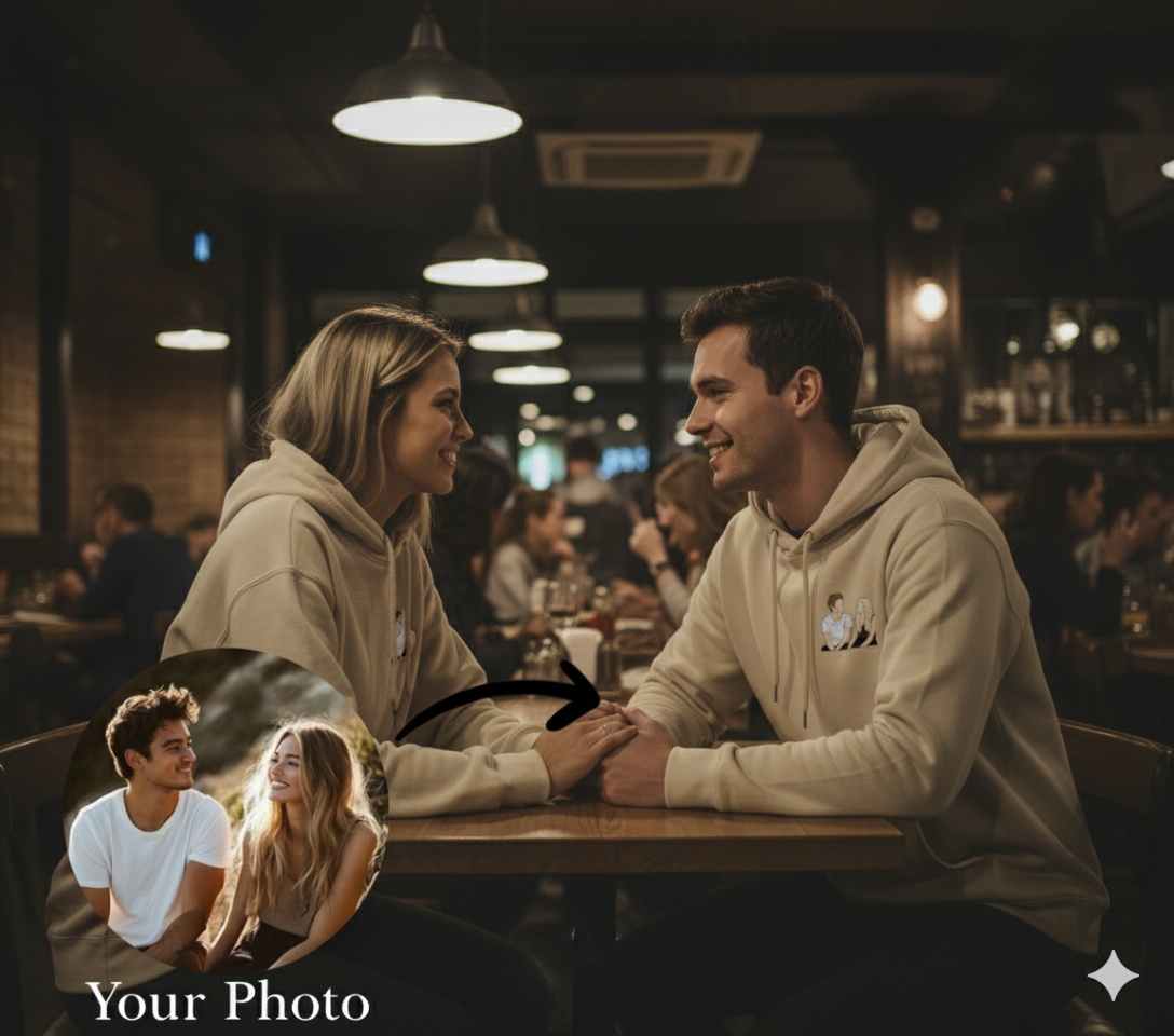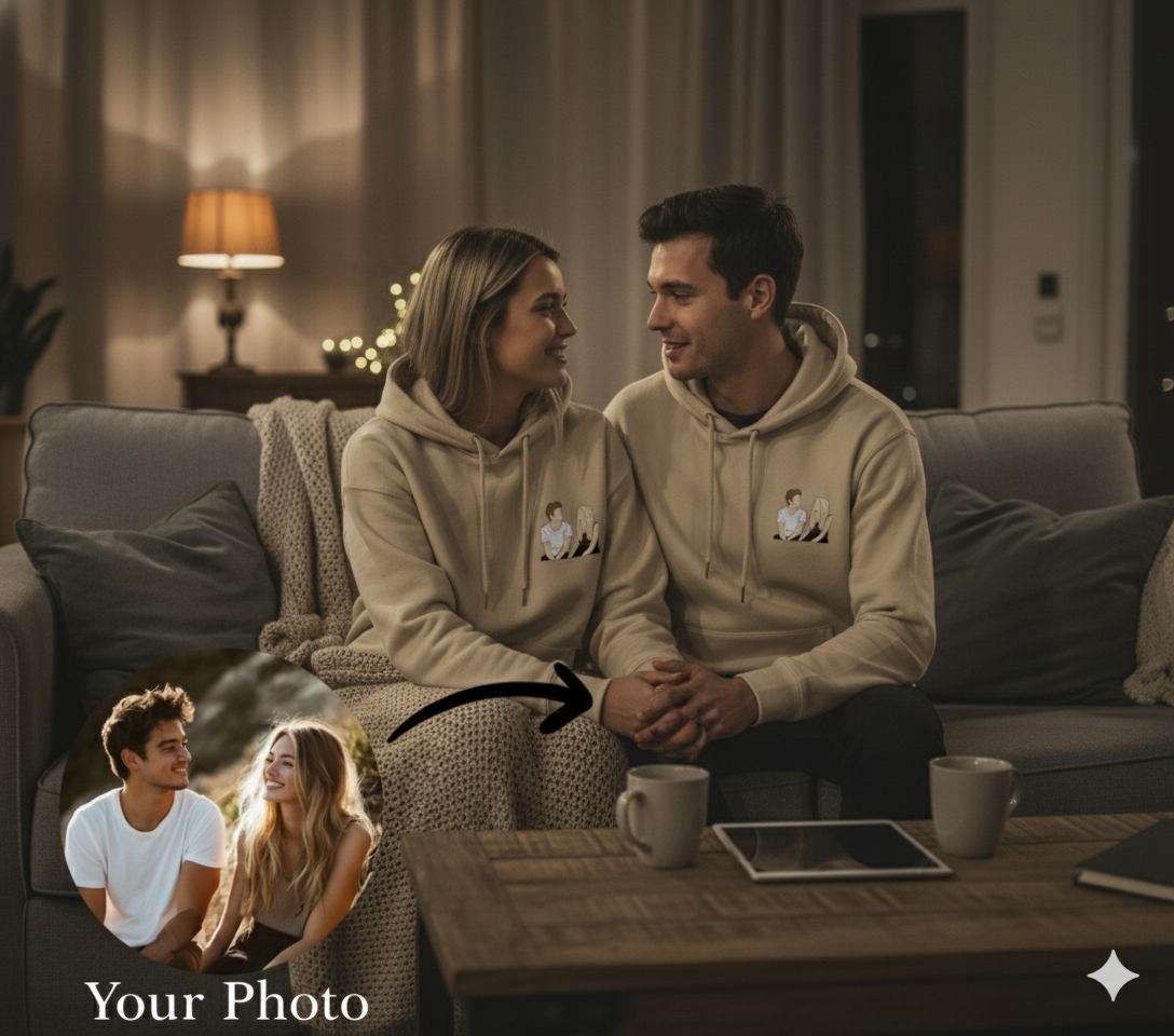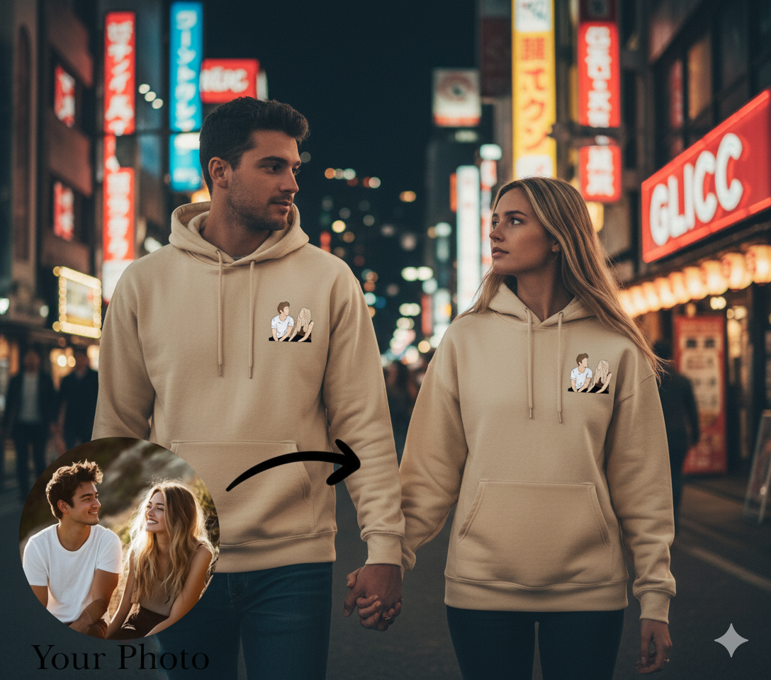Turn your beloved couple photo into a unique, hand-embroidered design on a soft, high-quality sweatshirt! Simply send us a photo, and we’ll create a custom embroidery that captures adorable photo